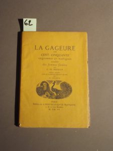 BREBEUF (G. de) La gageure ou cent cinquante épigrammes et madrigaux contre les femmes fardées. Avec 60 gravures sur bois par D. Galanis.