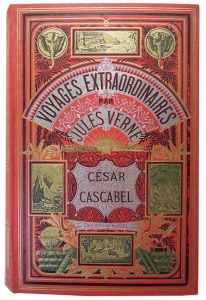 VERNE (Jules). César Cascabel. Paris, Hetzel, 1890. Grand in-8, cartonnage éditeur percaline rouge aux deux éléphants, éventail de couleur argentée.