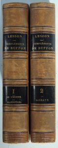 LESSON (René Primevère). Compléments de Buffon. Deuxième édition revue, corrigée et augmentée par l’Auteur. Paris, Pourrat frères, 1840. 2 volumes grand in-8, reliure demi-basane fauve, dos à nerfs orné, pièces de titre et de tomaison...