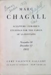 CHAGALL (Marc). Sculpture - Ceramics - Etchings for the Fables of La Fontaine. Novembre 18 - December 13 1952. New York, Curt Valentin Gallery, s. d. (1952). Plaquette in-12, agrafée.
