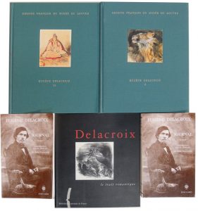 [DELACROIX]. SERULLAZ (Maurice). Dessins d’Eugène Delacroix (1798-1863). Inventaire général des dessins. École française. Paris, RMN, 1984. 2 volumes in-4, reliure toile bleu canard sous coffret, illustrations sur les plats.
