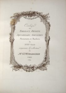 [MÜLHBACHER]. Catalogue des Tableaux, Dessins, Aquarelles, Gouaches, Miniatures et Marbres du XVIIIe siècle composant la collection de Mr Gve Mühlbacher. Vente à la Galerie Georges Petit, du 15 au 18 mai 1899. Paris, 1899. In-4, reliure...
