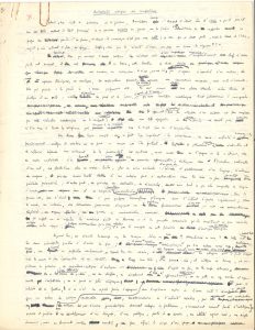 Manuscrit autographe, Probabilités critiques du compositeur, [1954] ; 4 pages in-4 (trace de rouille à la p. 1). Sur la critique musicale des compositeurs, article publié dans le Domaine musical, bulletin international de musique contemporaine (2e trimestre 1954), et recueilli dans Points de repère (Christian Bourgois, 1981). Le manuscrit, rédigé d’une minuscule écriture à l’encre bleu nuit, présente des ratures et corrections, avec quelques variantes. Après avoir cité Baudelaire parlant des écrits de Delacroix, Boulez note : « bien que souvent l’œuvre critique des créateurs soit d’une importance moindre comparativement aux chefs-d’œuvre qu’ils ont produits, il reste ce besoin, cette hantise de devoir préciser son domaine, ses recherches. Ce n’est jamais là que s’exprime l’essentiel d’un auteur ; mais ces aperçus théoriques, ces analyses, ces explications peuvent se révéler comme un commentaire nécessaire, une sorte d’incantation qui préside à la genèse de l’œuvre proprement dite. On veut souvent établir une cloison étanche entre théorie et pratique d’un art ; vieilles séparations de fond et de forme, d’essais et d’œuvres, qu’une tradition académique tient jalousement à sauvegarder. Il apparaît, néanmoins, que la situation d’un créateur est plus complexe que cette situation académique ne le voudrait supposer ; une telle ségrégation de ses diverses activités ne semble guère avouable si l’on songe à toutes les interférences qui tendent à se manifester sous le simple signe de l’imagination »... Etc. Sur la dernière page, Boulez a noté tête-bêche quelques lignes sur le Festival de Rome, dénonçant une « bureaucratie sordide »... On joint 2 tapuscrits de cet article.