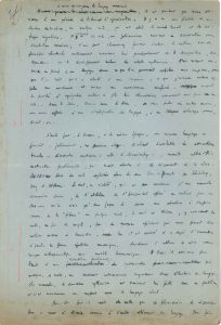 Manuscrit autographe, [Tendances de la musique récente, 1957] ; 5 pages in-fol. sur papier bleu et 4 pages in-4. Première version d’un texte sur les tendances de la musique moderne, pour une conférence accompagnant un programme musical, transformée en article publié dans La Revue musicale en 1957 (numéro spécial, Vers une musique expérimentale, dirigé par Pierre Schaeffer), et recueilli dans Relevés d’apprenti (Seuil, 1966), dans lequel Boulez tente de faire un bilan historique des différentes formes de l’héritage d’une modernité du début du XXe siècle. Le manuscrit, avec quelques ratures et corrections, présente d’importantes variantes avec le texte publié ; au manuscrit primitif, sur papier bleu, sur les tendances de la musique, paginé de 1 à 5, viennent s’ajouter 4 feuillets sur papier blanc (paginés de a à d), consacrés aux œuvres jouées (Varèse, Webern, Messiaen, John Cage, Webern…). « Si nous envisageons le langage musical, il est évident que nous arrivons à une période de bilan et d’organisation. Il y a eu une période de recherches destructrices, en quelque sorte, qui ont aboli le monde tonal et la métrique régulière. Il s’est produit du reste, un phénomène curieux de dissociation dans l’évolution musicale ; d’une part Stravinsky faisait évoluer le rythme avec des principes structurels entièrement nouveaux, basés principalement sur la dissymétrie, l’indépendance et le développement même des cellules rythmiques. [...] D’autre part, à Vienne, à la même époque, un nouveau langage se formait, patiemment, en plusieurs étapes [...] Bref, il nous est indispensable maintenant de regrouper toutes ces recherches, étant donné que rien de nouveau ne s’est produit depuis ces chefs de la musique contemporaine, que la génération suivante a piétinés en grimaçant d’après ses devanciers [...] Cette dissociation s’étant poursuivie un peu partout, et l’activité des Viennois ayant été longtemps tenue dans l’oubli pour ne retenir qu’un faux classicisme à aspect de fausse sécurité, dérivé de Stravinsky, et un résidu de romantisme au moins aussi saumâtre, nous avons donc à généraliser les découvertes faites, à élargir les moyens d’une technique déjà trouvée ; cette technique ayant été jusqu’à présent surtout un objet pour détruire, et donc, par cela, étant liée à ce qu’elle voulait détruire, il reste à lui donner son autonomie. Et à lier les structures rythmiques aux structures sérielles, par des organisations communes, incluant du reste non seulement la hauteur du son, mais son timbre, sa durée, son mode d’attaque et son intensité. On voit là, et sans que j’insiste beaucoup, la prodigieuse richesse de découvertes à faire »... Etc. On joint un feuillet dactylographié avec le programme musical annoté par Pierre Boulez (liste et ordre des œuvres avec minutage).