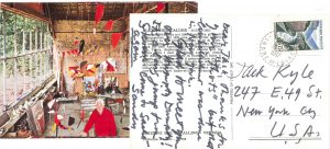 (1898-1976) sculpteur américain. Carte postale a.s. « Sandy », [Saché 10.VII.1967], à Jack Kyle à New York ; au dos d’une carte postale illustrée d’une photographie en couleurs de Calder dans son atelier à Saché, avec adresse ; en anglais. Il le remercie pour ses pensées (« Thanks for your “Thots” »), mais cet embellissement a été fait à New York. Il a été ravi de le voir « over Humpty Dumpty », et l’invite à revenir le voir à Saché…