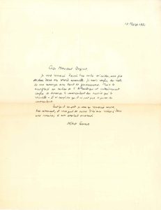 (1913-1960). 2 L.A.S., mars 1951, à C. Dupont [comptable aux éditions Gallimard] ; demi-page in-4 chaque. À propos de ses droits d’auteur. 10 mars. Il le remercie de l’avoir aidé, une fois de plus, dans sa corvée annuelle. « Je suis confus, du reste, de vous ennuyer avec tant de persévérance. Mais le naufragé au milieu de l’Atlantique est certainement confus de déranger le commandant du navire qui le recueille. Il n’empêche qu’il ne peut pas se passer du commandant »… 15 mars. « Sans vous, je me serais perdu dans ce maquis de chiffres et de pourcentages. J’attends maintenant avec résignation le coup de fusil de la fin. Mais je vous suis reconnaissant d’avoir bien voulu prendre en charge cette ingrate corvée »…