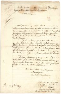 (1741-1824) graveur. L.A.S. comme « Graveur du Cabinet du Roi », Paris 10 novembre 1817, au duc Decazes, Directeur de la Police générale du Royaume ; 1 page in-fol. « La protection que votre Excellence accorde aux Lettres et aux Beaux Arts, me fait un devoir de lui donner connaissance de L’histoire de France représentée par figures accompagnées d’un précis historique que je publie, en 2 vol. in-8° et que je destine à l’éducation de la Jeunesse. Il seroit heureux pour moi Monseigneur que cette histoire de France, meritât le suffrage de Votre Excellence, j’oserois la supplier de la protéger, en souscrivant pour un nombre d’exemplaires qui me mettroit à portée de la continuer, avec plus de célérité, et en assureroit plus promptement le succès »...