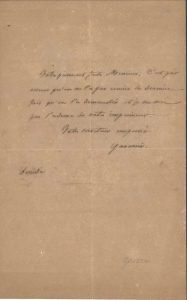 (1804-1866). L.A.S., Lundi ; demi-page in-8 (papier bruni). « Votre pierre est faite, Messieurs ; c’est par erreur qu’on ne l’a pas remise la dernière fois qu’on l’a demandée et je ne sais pas l’adresse de votre imprimeur »...