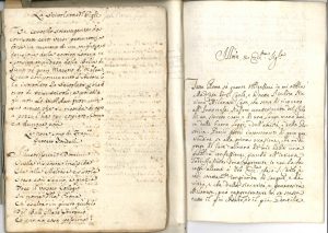 (1660-1722) auteur dramatique, conteur et satiriste italien, éditeur des œuvres de Sainte Catherine de Sienne. Ensemble de manuscrits. Manuscrit de vers et prose (cahier petit in-4 de 102 p. plus ff. vierges) : La Scivolata del Gigli, Lettera del Gigli agli Accademici Inbronati, Carteggio del Gigli con Luigi Medici, Capitolo nell Accademia Inbronata... Manuscrit de vers (cahier in-4 de 22 p.). Cahier de 2 pages dépliantes (grand in-fol., fente) et 6 pages in-8 : E comuni della Vaiddarbia a’ comuni della Montagnenola (2 versions), et lettre à une Excellence.