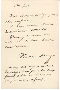 L.A.S., 1er juin ; 1 page in-8. « Mon éminent collègue, mon cher confrère, Je vous envoie mon remerciement attendri ». Il ajoute, sous sa signature : « Mettez mes respects et les hommages aux pieds des deux femmes nobles et charmantes que j’ai connues enfants ».