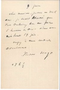 L.A.S., 9 juin ; ¾ page in-8. « Cher Monsieur, je suis un vieil ami. Je serais charmé que vous voulussiez bien me faire l’honneur de venir dîner avec moi lundi 19 juin »…