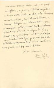 L.A.S., 19 mars 1889, à son cher « collabo » [Édouard Blau] ; 2 pages in-8. À propos de son opéra inachevé La Jacquerie (sur un livret d’Édouard Blau, terminé par Arthur Coquard et créé à titre posthume à Monte-Carlo, le 9 mars 1895]. Lalo a tardé à répondre, voulant « lire et relire, […] prenez pitié d’une intelligence très lente. [...] Je ne peux encore maintenant vous parler que du 1er acte : d’abord, il y a les trompes de chasse dont tout le monde a abusé, depuis la chasse du Jeune Henri qui a servi de type, jusqu’à la chasse de Litolff (pas plus mauvaise qu’une autre) qu’on a blagué parce que c’est éternellement la même formule ; il nous faut donc trouver autre chose »... Il s’interroge aussi sur la sortie de Jeanne, après la première scène avec Marcel, et sur le retour paisible des paysans avec les seigneurs, après avoir été « surexcités par le bûcheron » : autant d’observations « d’un lecteur qui n’est pas encore bien entré dans le sujet »...