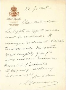 (1853-1914). Manuscrit autographe signé, Mariage blanc, 1890 ; 20 pages in-4 et 2 carnets in-12 de 42 et 24 pages (couv. de moleskine noire (à l’encre et au crayon). Manuscrit de premier jet, de ce drame en 3 actes qui fit scandale lors de sa création, le 20 mars 1891, au Théâtre Français. L’intrigue se joue entre un dilettante blasé, la naïve poitrinaire qu’il épouse chastement pour sortir de son ennui, et sa belle-sœur, passionnément amoureuse de lui… Le manuscrit, daté à la fin du 19 août 1890, à l’encre et au crayon, présente de nombreuses ratures et corrections. On joint le manuscrit a.s. d’une chronique, La Semaine dramatique, [juin 1892], et une lettre à lui adressée.