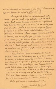 (1881-1958). 6 L.A.S., 1932-1958, à Marcel Thiébaut ; 8 pages in-12 (3 cartes postales illustrées avec adresse). Rome 4 janvier 1937, demandant l’article sur Tolstoï paru dans la Revue de Paris : « Ça me ferait une bonne lecture pour le voyage de retour ! »... Nice 20 février 1937 : « Nous vivons comme des sauvages, cher ami ; mais d’autant plus grand est notre plaisir quand la sympathie nous fait ouvrir notre porte. Ne manquez donc pas de venir au Grand Palais, quand vous serez dans le Midi »... Juin 1949 : « Je recommande à votre attention, cher ami, ce petit livre – juvénile confidence d’une octogénaire... (Madame Simon Bussy, la femme du peintre.) Si vous prenez à le lire autant de plaisir que j’ai eu à écrire cette version française, attirez sur Olivia la curiosité de vos lecteurs ! »... 21 avril 1958, félicitant Thiébaut de lignes sur Tolstoï : « On sent que si vous vous laissiez aller sur Tolstoï, vous nous découvririez des filons que la critique n’a pas exploités, ni même prospectés. Dépêchez-vous, – tandis que je suis encore de ce côté-ci du décor ! »… On joint une carte avec 2 lignes autographes.
