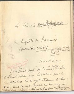 (1868-1952). Manuscrit autographe, Le Cénacle. Une enquête de l’amour, [vers 1890-1895 ?] ; 27 pages formats divers, montés sur onglets en un volume petit in-4, relié demi-maroquin à coins lie de vin, tête dorée, étui (Semet & Plumelle). Recueil de notes et esquisses pour un projet inédit de conte philosophique. Ces notes et esquisses, à l’encre (noire ou rouge) ou au crayon, encre noire ou rouge, jetés sur des papiers de formats divers, se rattachent à un projet dont le titre primitif, Le Cénacle de Polyphile, puis Le Cénacle, est accompagné du sous-titre : « Une enquête de l’amour (première soirée) » ; un autre titre est envisagé : Les Scrupules à Polyphile. Un début est esquissé : « J’avais fort mal parlé de l’amour ce soir-là au lieu qu’il l’avait défendu avec la chaleur qui lui était ordinaire sur ce sujet et, comme la demi de onze heures sonnait, Polyphile me demanda si j’avais envie de dormir. Non lui dis-je. Il me pria donc de venir souper avec lui »… Maurras a jeté sur le papier des notes parfois assez crues : « Jolies filles de 15 ans ici. Puis l’exercice de l’amour stérile, dont les fiancés ont appris les pratiques à la caserne, et elles prennent une expression animale, les lèvres s’enflent, les joues fuient et les yeux deviennent stupides. Tout le visage est ainsi déformé, pendant que le reste est flétri »… On note une dialogue entre « L’Âme » et « L’Ombre » ; des réflexions sur « l’Abstinence » ; des esquisses, des réflexions philosophiques sur l’amour, des citations, des maximes : « Contenter son corps, une façon de le vaincre. – Se délivrer d’œuvres serviles ; se rapprocher de l’esprit pur. – Confiner à la divinité ».