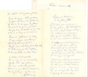 (1820-1893) chansonnier. 2 poèmes autographes (un signé), et 18 L.A.S., Paris, Nice, Roubaix 1855-1891 ; 24 pages formats divers, qqs adresses (on joint un télégramme). Examen de conscience d’une jeune fille, long poème de 13 sizains : « Je le sais par expérience : Je suis grande, j’ai dix-sept ans »... Cocci-coccinelles, de 6 quatrains, joue sur les répétitions : « Sentimenta-mentalement Les bêtes-bêtes sont perchées »… 5 février 1855, [à Crémieux], il ne peut se rendre à son invitation, et « renonce à la bonne fortune que vous me proposez »... 8 février 1862, à Edmond [Cottinet] : « J’ai entendu parler de tes articles au Courrier du Dimanche et je suis fier pour toi du succès qu’ils ont obtenu »... 28 juin 1867, remerciant pour un article flatteur : « votre suffrage m’est très précieux »... 19 janvier 1884, [à la comtesse de Chambrun], la priant de garder en dépôt un exemplaire de sa grande édition de Chansons : « Il est possible qu’il trouve des amateurs parmi vos invités »... 29 avril 1887, à Octave Lebesgue : « Toujours aimable pour le vieux chansonnier, vous m’avez encore, à propos des chansons de Pottier, adressé dans Paris un bouquet d’un parfum exquis »... 2 décembre 1887, au même : « je vous fais parvenir les chansons qui manquent à votre collection »... 5 décembre 1887, à une petite amie. « Hélas ! je ne pourrai jouir de la bonne fortune que m’offre notre chère comtesse »... 18 juin 1888, à Mlle Fernande : conseils poétiques... Etc.
