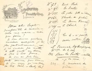 (1852-1914) pianiste et compositeur. 18 L.A.S., 1903-1913, à Edmond Sagot, libraire et marchand d’estampes ; 33 pages formats divers, 2 enveloppes. Intéressante correspondance sur ses collections d’estampes et de livres, et sur ses concerts. Pugno, souvent en tournées, charge Sagot de ses achats à Drouot, et lui parle de sa musique à travers ses différents concerts qu’il entreprend en Europe. Les lettres sont écrites de Paris, Gargenville, Saint-Jean-sur-Mer, Londres, Edinburgh, Saint Jean sur mer, Bruges, Vienne, Mayence, Scheveningue. Londres, avec liste d’estampes à acheter, sans aller au-delà de 600 francs pour l’ensemble... 12 juin 1903, sur les lots de Rops achetés à la vente publique du 30 mai… Saint-Jean-sur-Mer (Alpes-Maritimes) 15 février 1904 : « mon année sera superbe comme chaque année. Grâce au ciel – j’ai une santé de colosse et une énergie féroce pour mener à bien cette vie effroyablement fatigante. Pour vous donner une simple idée de quelques tours de force, je joue le 24 Fév. au soir à Venise le concert terminera à 11 heures, à 11 heures 20, je prendrai le rapide pour Milan, Bâle, Calais et je répéterai à Londres le matin du 27 – concert le soir – et le 29 à 3 h après-midi – concert à Nice. C’est pas mal comme crochet – hein – Venise-Londres-Nice en cinq jours – 3 concerts ». Il compte voir les « belles choses que vous m’annoncez, Raffet, Bracquemont et Rops. Ne comptez pas sur moi pour vous céder mes Fantin. Hélas non, avec ma vie de commis voyageur en musique je n’ai pas vu l’exposition de Lepère – et j’en suis triste, car vous connaissez a foi et mon adoration pour ce grand artiste […] je vous avais chargé de me retenir un A rebours. J’ai tous les livres de Lepère et je ne veux pas en manquer un »… Edinburgh 12 décembre 1904, pour la souscription du catalogue d’Auguste Lepère et un lot de Fantin-Latour. « Je rentre à Paris pour jouer le 18 aux Concerts Colonne […] je suis dans la neige jusqu’au cou, et le froid jusqu’aux os ! Quel foutu métier ! ». 3 septembre 1909, demandant un délai de paiement : « Vous savez que l’été est pour nous la pire des saisons et que notre moisson ne commence que vers le milieu d’octobre »… Gargenville [6 septembre 1911]. « Ne me prenez pas pour un mauvais payeur » ; il dû acheter une maison dans le Midi, a eu des embêtements de maladie... Mais « les Concertos vont sévir à Hambourg, à Berlin, Elberfeld, à Anvers, 8 fois en Angleterre et en Écosse, et le 8 novembre je reviens transfiguré en Crésus »... Vienne 24 janvier 1912, sur sa tournée : « La Haye, Arnheim, Haarlem, Amsterdam, Nancy, Vienne, Lemberg, Cracovie, Agram – et demain matin je pars pour l’Allemagne où j’ai 3 concerts – Ratisbonne, Baden-Baden et Munich […] je suis inouï d’énergie et de vaillance chaque jour des 10 et 13 heures de chemin de fer – et quelquefois concert le même jour — et jamais ne ne me suis senti plus fort »… Etc. On joint un relevé de comptes de la Librairie Sagot, et 2 cartes postales.