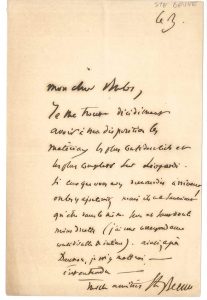 L.A.S., le 3 [1844], à François Buloz ; 1 page in-8. Il a rassemblé « les matériaux les plus confidentiels et les plus complets sur Léopardi […] j’ai une correspondance confidentielle & intime ». Il va donc se mettre à son étude, à laquelle il pourra ajouter les documents qu’a demandés Buloz.