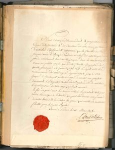 Environ 80 lettres ou pièces, la plupart L.S. ou P.S., 1671-1911 ; collées ou montées avec des notes généalogiques dans un album à couverture cartonnée et toilée (mouillures et défauts). Recueil de documents concernant deux familles de militaires, les familles Moraine et Le Rouzic. Titre de rente (1671). Affiche d’un Arrest du Conseil d’Estat du Roy (1723). Commission de médecin dans l’Armée de Condé (Rothembourg 1794). Assignats. Certificat du grade de docteur en médecine (Montpellier 1804). Brevet d’une société médicale de Venise (1809). Certificats de service militaire (1800, 1814, 1815). Brevets de sous-lieutenant (1804) et de capitaine (1809). Feuille de route (Venise 1814). Certificats de service et de fidélité à la cause royale au nom de Jacques-Marie Le Rouzic, chirurgien en chef d’état-major général au service de l’Autriche (1815, 1816). Correspondance de la Grande Chancellerie de la Légion d’honneur et du ministère de la Marine. Passeport (1827). Certificat de demi-bourse à l’école militaire de La Flèche (1842)… Documents signés par Louis-Joseph de Bourbon prince de Condé, Alexandre Berthier, maréchal Soult duc de Dalmatie, le vicomte de Saint-Mars, le comte de L’Espine, les princes de Rohan, le comte de Kervasdoué, le comte de Trogoff, le marquis de Clermont-Tonnerre, le vicomte Dubouchage, le maréchal Randon, les généraux Du Barail, Vinoy, Gallieni, etc.