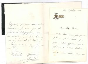 11 L.A.S. Amélie d’Orléans, Reine du Portugal (3, à Cécile Patinot, 1886-1909, dont une sur la mort de son mari). Hélène duchesse d’Orléans (1853, condoléances à Armand Bertin). Louis-Philippe d’Orléans, comte de Paris (3, 1873-1886, à J. Bapst). Isabelle d’Orléans, comtesse de Paris (1878, autorisation cosignée par son mari d’exposer ses parures de saphirs et d’émeraudes à l’Exposition universelle ; et 3 à Cécile Patinot, 1885-1889). On joint une lettre racontant l’accueil réservé à la duchesse d’Orléans à Eisenach en septembre 1851.
