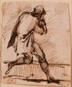 GIOVANNI BATTISTA PIRANESE (MOGLIANO VENETO 1720 - ROME 1778) - Étude d'homme courant.Plume et encre noire, sanguine.15 x 12 cm.