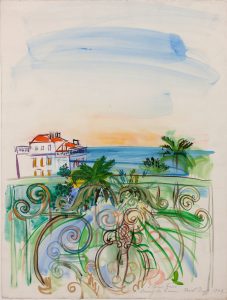 RAOUL DUFY (1877-1953) - Fenêtre ouverte à Cannes, 1942.Aquarelle et gouache sur papier, signée, datée et dédicacée «A Louis Carré souvenir de Cannes» en bas à droite.65 x 50 cm