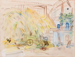 RAOUL DUFY (1877-1953) - Moisson, 1944.Aquarelle et gouache sur papier signée, dédicacée «à Louis Carré» et datée en bas au milieu.50 x 65 cm.Harvest, 1944.