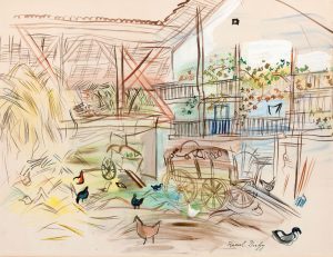 RAOUL DUFY (1877-1953) - La grange,1944.Aquarelle sur papier, signée en bas à droite50 x 65 cm.