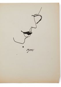 ■WARHOL ANDY (1928 - 1987) - You.Dessin original à l'encre sur papier, titré «You» par Andy Warhol, représentant la moitié d'un visage d'homme portant des lunettes. Circa 1953 ; 27,5 x 21,5 cm, sous encadrement.