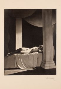 ■DRTIKOL FRANTISEK (1883-1961) - Le Repos, ♦ PHOTOGRAPHIE ORIGINALE SIGNÉE. Circa 1920.28,5 x 22,5 cm, contrecollée sur carton 41 x 32cm, sous passe-partout.