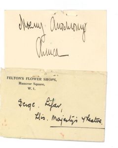 AUTOGRAPH CORRESPONDENCE SENT TO SERGE LIFAR. 10 AUTOGRAPH CARDS AND 9 ENVELOPES.