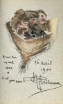 • Albert GUILLAUME (dessin à la plume et aquarelle, trois têtes dans un bouquet, «A nous trois un seul coeur, et il est pour vous», 26 avril 1901, p. 175).