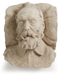 Plaster cast death mask of Victor Hugo, signed and dated «J.Dalou, 23 Mai 1885» ; dedicated to «Jeanne et Georges Hugo». Height : 43 cm, Length : 34 cm (Eclats)