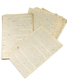 bleue, numérotées au crayon en haut à droite, comportant quelques ratures et corrections ultimes.
