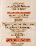 13 textes dont le poème collage publiés dansPoisson soluble II sous les numéros 25 et 37 (Pléiade), 4 textes demeurés inédits.