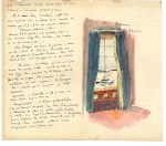 ─ [Été 1918], récit du voyage avec Édouard Lebey pour le château de l'Isle-Manière près d'Avranches ; description de sa chambre dite du «petit pêcheur» ; dessin commenté de son majestueux pot de chambre...