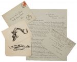 a photograph with dedication and attached drawings (in addition 2 letters by Agathe to her father) ; approximately 270 pages in various formats, addresses and envelopes (a few documents attached); attached 14 letters to his son-in-law Paul ROUART, mostly signed autograph letters (including 3 postcards, a typed letter, one fixed with tape, approximately 20 pp.), 1926-1932 and some not dated, including a letter written from Polynesia when Agathe had her hair cut.