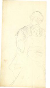 Dessin à la mine de plomb : Mme Valéry tenant un enfant sur ses genoux ; 20,3 x 11,2 cm.