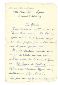 1 page in-4 on letterhead (DE LATTRE DE TASSIGNY).