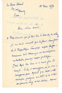 • 30 avril 1965, L.S. de voeux et félicitations pour le mariage de son petit-fils Vincent Rouart.
