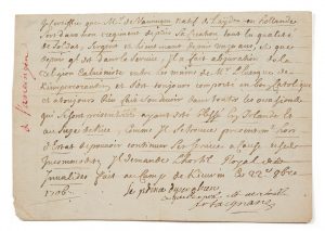 LIEUTENANT CAPTAIN OF THE MUSKATEERS, Signed document, with an added autographe note, co-signed by Louis of Gand of Mérode, prince d'ISENGHIEN (1678-1767), Camp of «Kieuvin» 22 October 1706 ; 1 page oblong in-8.