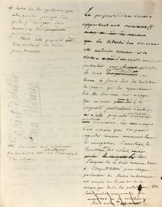 Ce brouillon, qui présente de nombreuses ratures et corrections, avec d'importantes additions dans la marge de gauche, se rattache au travail de Condorcet sur les assemblées provinciales ; on en retrouve des traces dans l'Essai sur la Constitution et les fonctions des assemblees provinciales posthume.