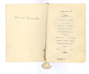 ■ROOSEVELT THEODORE (1858-1919) - 26° PRÉSIDENT DES ÉTATS-UNIS D'AMÉRIQUE Signature autographe, 1909 ; au crayon, en 2e page d'une brochure in-8 impr. du "R.-P.-D. Admiral", couverture cartonnée gaufrée avec drapeaux américain et allemand...