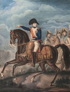 ÉCOLE FRANÇAISE DU XIXE SIÈCLE, SUIVEUR DE CARLE VERNET. Napoleon 1er, Empereur Français, Roi d'Italie et Protecteur de la Confédération du Rhin Plume et encre noire, gouache et aquarelle. 78 x 51 cm.