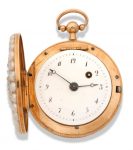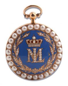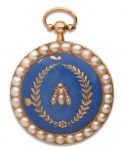 Gold pocket watch with blue enameled decoration representing MARIE-LOUISE's emblems, with a bee inset with natural pearls and surrounded by a laurel wreath.