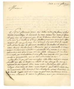 [Après le 18 mai 1782]. «Rien n'est plus flatteur pour une âme sensible que la manière dont s'est passée mon élection, mais ce que j'y distingue le plus, c'est le zèle qu'y ont fait paroîtreMr d'ALEMBERT, de CONDORCET et l'Abbé BOSSUT ; les dignités ne sont pas toujours des preuves de mérite, mais les suffrages de tels juges sont irréprochables, et il n'est pas étonnant qu'ils ayent entraîné les autres»... Il est particulièrement flatté du suffrage du comte d'Angiviller, et d'avoir eu comme concurrent M. Priestley ; il a écrit à M. de La Rochefoucauld comme Président de l'Académie et craint d'avoir commis une méprise...