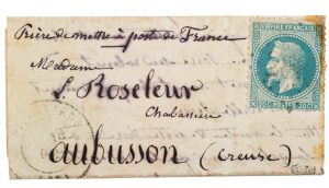Cachet d'arrivée Aubusson 8 janvier 1871, peu lisible.