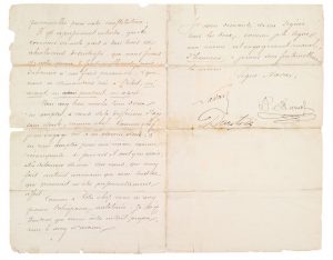 Papier fragilisé, plis marqués horizontaux. Il pourrait s'agir d'un premier projet de la convention.