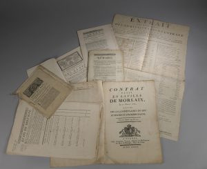 [ARCHIVES IMPRIMÉES]. Un ensemble de neuf pièces imprimées du XVIIIe siècle et du début du XIXe siècle de divers formats.