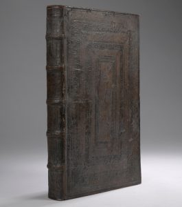 In-folio (200 x 325 mm), veau, plats entièrement ornés d’un décor d’encadrement à froid, dos à nerfs, tranches dorées (reliure de l’époque).